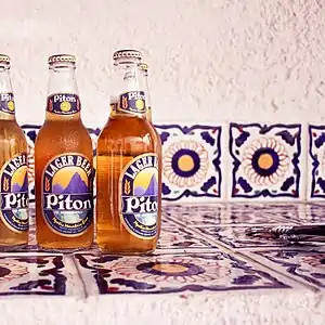 Piton is a Pilsner beer brand from the island of Saint Lucia, brewed by Windward & Leeward Brewing Limited, which is owned by Heineken.[1] The beer was named for the Gros Piton and Petit Piton mountains on the island.[2] It was first brewed on October 7, 1992.