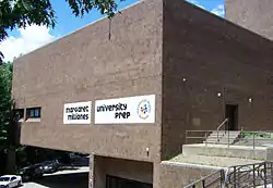 University Prep is housed in the former Margaret Milliones Middle School building. The school was originally known as Herron Hill Junior High School. Herron Hill took its name from the land surrounding the mansion of the Mayor of Pittsburgh from 1849 to 1850, John Herron. The school was designed by architects Avalon and Center, and opened in 1928. The school was closed in 1974, and after extensive remodeling, reopened as the Margaret Milliones Middle School.[5]