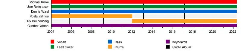 Place Vendome was formed by Helloween and Unisonic vocalist Michael Kiske, Dennis Ward (bass and production), Kosta Zafiriou (drums) and Uwe Reitenauer (guitars) from the band Pink Cream 69 and Gunther Werno (keyboards) from the band Vanden Plas.