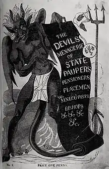 A 1692 bill, which failed to pass, would have shortened the length of parliaments and banned officeholders from serving in Parliament. John Granville, apparently recalling the Self-denying Ordinance of 1645, called it a 'self-denying bill' in debate.[4][5]