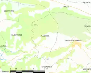 Planèzes is located in the canton of La Vallée de l'Agly and in the arrondissement of Perpignan. Planèzes is part of the Fenouillèdes.