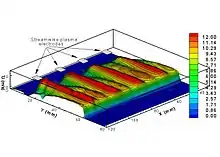 A plasma actuator induces a local flow speed perturbation, which will be developed downstream to a vortex sheet. As a result, plasma actuators can behave as vortex generators. The difference between this and traditional vortex generation is that there are no mechanical moving parts or any drilling holes on aerodynamic surfaces, demonstrating an important benefit of plasma actuators. Three dimensional actuators such as Serpentine geometry plasma actuator generate streamwise oriented vortices,[15] which are useful to control the flow.[16]