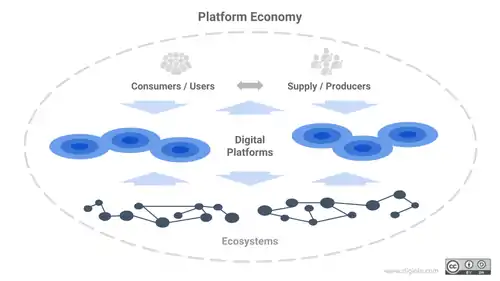 "Platform economy" is one of a number of terms aiming to capture subsets of the overall economy which are now mediated by digital technology. The terms are used with diverse and sometimes overlapping meanings; some commentators use terms like "sharing economy" or "access economy" in such a broad sense they effectively mean the same thing. Other scholars and commentators do attempt to draw distinctions and use the various terms to delineate different parts of the wider digital economy. The term "platform economy" can be viewed as narrower in scope than "digital economy", but wider in scope than terms like "on demand economy", "sharing economy" or "gig economy". Several scholars have argued that "platform economy" is the preferable term for discussing several aspects of emergent digital phenomena in the early 21st century.[7] [8] [9] [10] The "platform economy" corresponds to the sum of "marketplaces", which form part of a larger entity analysed from a legal-philosophical perspective in a new glossary developed by an interdiscipinary team forming part of the Internet Governance Forum called the Dynamic Coalition of Platform Responsibility.[11]