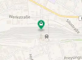 - Regionalbahn and Regional-Express trains run to Munich on the single-tracked electrified southern route to Landshut and Munich (KBS 931). From December 2009 there should be an hourly, RE, through service. Goods trains ply the line, especially to and from the BMW factory in Dingolfing.