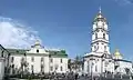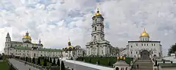 Holy Dormition Pochayiv Lavra (Ukrainian: Свято-Успенська Почаївська Лавра, romanized: Sviato-Uspenska Pochaivska Lavra, Russian: Свято-Успенская Почаевская Лавра, Polish: Ławra Poczajowska) is a monastery in Pochayiv, Kremenets Raion, Ternopil Oblast, Ukraine. The monastery belongs to the Ukrainian Orthodox Church (Moscow Patriarchate).[1] For centuries, it has been the foremost spiritual and ideological centre of various Orthodox and Eastern Catholic denominations in Western Ukraine. The monastery tops a 60-metre hill in the town of Pochayiv, 18 km southwest of Kremenets and 70 km north of Ternopil.