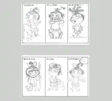 Teela is a pygmy from the female tribe who plays a similar role to Klik's. She was simultaneously introduced to the series along with Linsee and Toola. Although it's hard to tell when next to the female pygmies, Teela seems to be slightly shorter than the other tribe members (of both the male and female tribe). She has brown hair and two pigtails held by small bones. Like Klik, she sports a pair glasses but instead of having them on top of her head like Klik, she wears them in the usual style. The glasses are also rectangular in shape and have a white strip of cloth in the nose bridge (to represent how "nerdy" she is). Teela also wears a leaf skirt with a leaf top. Teela is shown to be quite smart like Klik, but unlike him, she does not believe in the Gods and usually talks about scientific subjects rather than divinity. Despite her capabilities, she is picked on by the other members of her tribe, as opposed to Klik, who is respected among his peers. As time progresses, however, she gains more recognition from her fellow tribe members and the male tribe. She was also the first pygmy that was believed to have permanently died, after she was accidentally killed by Linsee (her revival had a plot related delay).
