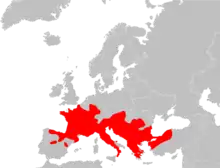 The natural range spans much of the mainland Europe except from the north and very south and extends to Turkey.[1][4] It occurs as introduced populations in southern Britain,[1][17] where one such population in the seaside town of Ventnor on the Isle of Wight has become somewhat famous, and also in North America.[1] There has been some scientific debate as to whether the populations in Southern England represent the northern edge of their native range.[18]
