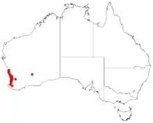 Podotheca chrysantha is a small herb in the family Asteraceae endemic to Western Australia.[4] It grows from 0.2 to 0.5 m high, and has yellow flowers which are seen from August to December. It grows in sand over limestone or laterite on limestone ridges and in wet depressions.[4]