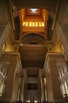 The Foundation came as a reaction to a Minister of Justice who was thinking of moving the courts from the Palace of Justice altogether and to a Secretary of State, who proposed to reserve 45.000 m2 in the building for commercial, recreational and cultural purposes.