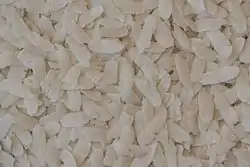 Pohaa, also known as pauwa, sira, chira, or aval, among many other names, is flattened rice originating from the Indian subcontinent. Rice is parboiled before flattening so that it can be consumed with very little to no cooking. These flakes of rice swell when added to liquid, whether hot or cold, as they absorb water, milk or any other liquids. The thickness of the flakes varies between almost translucently thin (the more expensive varieties) to nearly four times thinner than a normal rice grain.