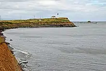 A lighthouse was first erected at Point Aconi in 1874. The last lighthouse, a glass fibre tower standing 11 metres (36 ft) tall, was erected in 1989. It was destroyed by fire in 2014.[3]