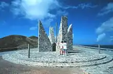 A sundial known as the Millennium Monument was built above Point Udall for the New Year's celebration in 2000 — it marks the azimuth of the first U.S. sunrise of that year. From the monument an informal trail of moderate difficulty leads down to the point, composed primarily of uplifted and rotated volcanic and sedimentary rocks of Upper Cretaceous origin. [2]