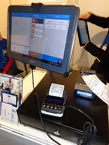 To calculate the amount owed by a customer, the merchant may use various devices such as weighing scales, barcode scanners, and cash registers (or the more advanced "POS cash registers", which are sometimes also called "POS systems"[4][5]). To make a payment, payment terminals, touch screens, and other hardware and software options are available.