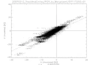 The Pol-Ice 2007 campaign included measurements over sea ice and open water from a fully polarimetric, aeroplane-mounted, L-band (1.4 GHz) radiometer.[1] Since the radiometer was fixed to the aircraft, changes in aircraft attitude are equivalent to changes in surface slope. Moreover, emissivity over calm water and to a lesser extent, sea ice, can be effectively modelled using the Fresnel equations. Thus this is an excellent source of data with which to test the ideas discussed in the previous section. In particular, the campaign included both circular and zig-zagging overflights which will produce strong mixing in the Stokes parameters.