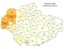 The majority of Poles in Ukraine assimilated into the Ukrainian culture. By 1959, 69% spoke the Ukrainian language, 19 percent spoke Polish and 12 percent spoke Russian.[10]