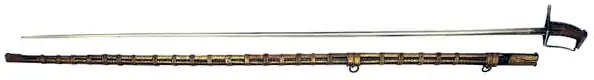The towarzysz husarski carried underneath his left thigh a koncerz (up to 1.5 metres (4.9 ft) in length) and, often, a palasz (a type of broadsword) under his right thigh. The szabla was carried on the left side, and several types of sabres were known to winged hussars, including the renowned szabla husarska.