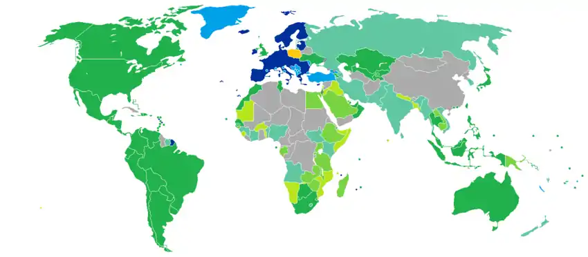 Because Poland forms part of the European Union, Polish citizens are also citizens of the European Union under European Union law and thus enjoy rights of free movement and have the right to vote in elections for the European Parliament.[17] When in a non-EU country where there is no Polish embassy, Polish citizens have the right to get consular protection from the embassy of any other EU country present in that country.[18][19] Polish citizens can live and work in any country within the EU as a result of the right of free movement and residence granted in Article 21 of the EU Treaty.[20]