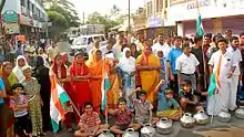 Kiss of Love protest was a non-violent protest against moral policing, which started in Kerala, India, and later spread to other parts of India.[9][10][11][12][13] The movement began when a Facebook page called 'Kiss of love' called forth the youth across Kerala to participate in a protest against moral policing on 2 November 2014, at Marine Drive, Cochin.[14][15] The movement received widespread support with more than 154,404 'Likes' for the Facebook page.[16][17] After the initial protest in Kochi, similar protests were organised in other major cities of the country. It received opposition from various religious and political groups like Bharatiya Janata Yuva Morcha, SDPI, Vishva Hindu Parishad, Shiv Sena, Bajrang Dal, Hindu Sena and Ernakulam wing of Kerala Students Union.[18][19][20][21] On specific occasions but not exclusively, both the Supreme Court of India and Delhi High Court have made it clear that kissing in public is not an obscene act and no criminal proceedings can be initiated, for kissing in public, through landmark judgments.[22][23][24][25][26]