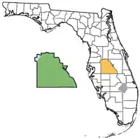 Polk County can boast more individual fossil recovery sites than any other Florida county due to the phosphate mining concerns. Bone Valley Formation is a prime geologic formation. Some of these sites are: Agricola Road (AEO),[1] Agrico Pierce Mine (AEO), American Agricultural Chemical Company Mine, Brewster Phosphate Mine, Fort Meade Mine,[2] Kingsford Mine, Phosphoria Mine, Fort Green Mine, Payne Creek Mine, and Palmetto Mine.