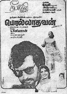 Rajinikanth initially wanted to star in a Tamil remake of the Hindi film Vishwanath (1978), with S. Ravi producing. Ravi watched the film, but did not like it; Rajinikanth and Ravi then decided to remake a different film. K. Balaji gave Ravi a video cassette of the Kannada film Premada Kanike (1976), and told him to tell Rajinikanth to watch it. Rajinikanth told Ravi he had already watched the film multiple times and liked it, so it was decided to remake the film in Tamil as Polladhavan.[4] The film was directed by Ravi's father Muktha Srinivasan (who also wrote the screenplay) and produced by Ravi under Vidhya Movies.[3] The film was made in CinemaScope.[5] Cinematography was handled by M. Karnan,[4] and editing by V. P. Krishna.[3] Srinivasan cast Delhi Ganesh after seeing his performance in a play titled Thuppariyum Saambu.[6] Shooting for the film took place primarily at Bangalore,[7] with additional shooting taking place in Chennai, Shimla and Kashmir.[4]