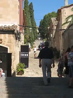 Most houses were built in the 17th and 18th centuries and many streets are very narrow and compact, a legacy from the medieval era. The central square, called Plaça Major, has numerous outdoor cafés and is dominated by a large 13th-century church Esglèsia de Nostra Senyora dels Àngels (Our Lady of the Angels) which was built by the Knights Templar.