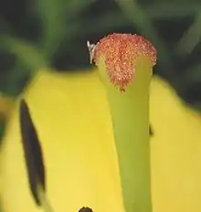 In angiosperms, the mechanism has been studied more extensively as pollen tubes in flowering plants grow very fast through long styles to reach the well-protected egg. There is great variation in pollen tubes in angiosperms and many model plants like petunia, Arabidopsis, lily and tobacco plants have been studied for intraspecific variation and signaling mechanisms.[15] In flowering plants, a phenomenon called polyamory can occur where many ovules are fertilized and overall fitness of the organism is yet to be studied with respect to rate of pollen tube growth.[16][15]