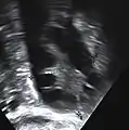 • Gynecologic ultrasonography, specifically looking for small ovarian follicles. These are believed to be the result of disturbed ovarian function with failed ovulation, reflected by the infrequent or absent menstruation that is typical of the condition. In a normal menstrual cycle, one egg is released from a dominant follicle – in essence, a cyst that bursts to release the egg. After ovulation, the follicle remnant is transformed into a progesterone-producing corpus luteum, which shrinks and disappears after approximately 12–14 days. In PCOS, there is a so-called "follicular arrest"; i.e., several follicles develop to a size of 5–7 mm, but not further. No single follicle reaches the preovulatory size (16 mm or more). According to the Rotterdam criteria, which are widely used for diagnosis,[10] 12 or more small follicles should be seen in an ovary on ultrasound examination.[20] More recent research suggests that there should be at least 25 follicles in an ovary to designate it as having polycystic ovarian morphology (PCOM) in women aged 18–35 years.[88] The follicles may be oriented in the periphery, giving the appearance of a 'string of pearls'.[89] If a high resolution transvaginal ultrasonography machine is not available, an ovarian volume of at least 10 ml is regarded as an acceptable definition of having polycystic ovarian morphology instead of follicle count.[88]