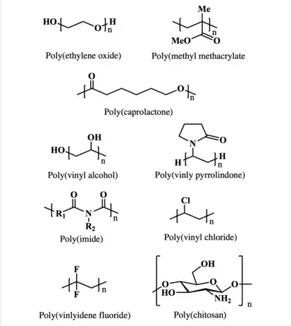 Another key parameter of transport is the temperature dependence of polymer morphology on transport mechanisms by the glass transition temperature.[1][10] These electrolytes differ from one another in their processing methods and applications where they are to be used. Their properties and morphology can be tuned to that desired of the application they are intended for. A shared structural feature of these polymers is the presence of a heteroatom, namely nitrogen or oxygen, although sulfur has also been demonstrated.[1][2][10]