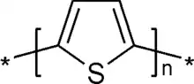 {{cite journal}}: CS1 maint: uses authors parameter (link) - Kobayashi, M.; Chen, J.; Chung, T.-C.; Moraes, F.; Heeger, A.J.; Wudl, F. (January 1984). "Synthesis and properties of chemically coupled poly(thiophene)". Synthetic Metals. 9 (1): 77–86. doi:10.1016/0379-6779(84)90044-4.
