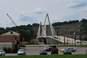 The Bridge of Honor, commonly known as the Pomeroy–Mason Bridge is a cable-stayed bridge over the Ohio River between the American cities of Pomeroy, Ohio and Mason, West Virginia.[3] With construction being carried out by the C.J. Mahan Construction Company and overseen by the Ohio Department of Transportation, it was completed on December 30, 2008.[4][5] Ownership of the bridge was transferred to the West Virginia Division of Highways upon completion.[1] The crossing carries Ohio State Route 833 and West Virginia Route Spur 62.