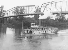 Pomona was reconstructed in 1926.[3] The reconstructed boat was much smaller, rated at 216 gross tons and 120 net tons.[3] The new boat was designed to pass under the draw of the Kelso bridge on the Cowlitz river.[43] While the Kelso bridge was a lifting span, the rebuilt Pomona was intended to be able to pass under the bridge without having to raise it.[44] The length was reduced from 134 feet to 120 feet.[29]