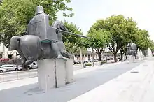Ponce died shortly after his final act, his donation for his son's soul, and he was buried in the Cathedral of Zamora. In the fifteenth century a sculpture of Ponce, in armour and at prayer, was placed in a niche in the main chapel.[67] On 25 May 1163 his surviving children made a joint donation to the canons of Zamora of a parcel of land at Villarrín de Campos for the sake of their father's soul.[64] There is a seemingly authentic charter witnessed by Ponce de Cabrera as lord of Villafranca del Bierzo dated 13 March 1165. The count was dead by this date, and it appears the date on this genuine charter is incorrect.[2] Ponce's death has sometimes been mistakenly placed in 1169.[68] There is a street in central Zamora named "Calle Ponce de Cabrera".[69]