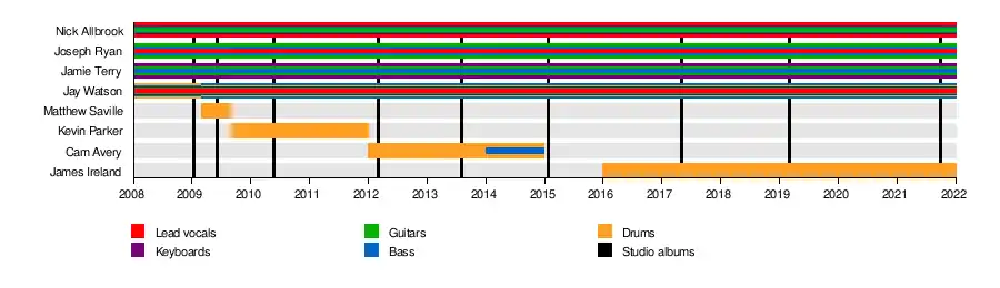 - James "Gin" Ireland – drums, occasional keys, production and mixing (2016–present)[21]