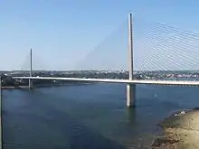 ![]() The Pont de l'Iroise, seen from the Plougastel end of the pont Albert-Louppe looking north-east and upriver | |