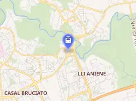 Ponte Mammolo is an above ground station on line B of the Rome Metro in the Ponte Mammolo district of Rome. It is on the road which links Viale Palmiro Togliatti to Via Tiburtina, and nearby is the river Aniene.