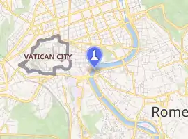 Ponte Vittorio Emanuele II is a bridge in Rome constructed to designs of 1886 by the architect Ennio De Rossi. Construction was delayed, and it was not inaugurated until 1911. The bridge across the Tiber connects the historic centre of Rome (Corso Vittorio Emanuele, whose axis the bridge extends, and piazza Paoli at the bridgehead) with the rione Borgo and the Vatican City, close what is left of the ancient Pons Neronianus.[1] The bridge commemorating Vittorio Emanuele II of Italy is carried in three arches spanning a distance of 108 metres. It is decorated at the ends with high socles carrying colossal bronze winged Victories and over each of the piers with massive allegorical travertine sculptural groups.[2]