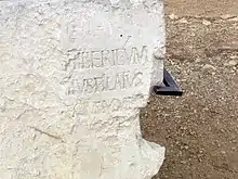 Vardaman "freely" translates it as follows: "Tiberium [?of the Caesareans?] Pontius Pilate, Prefect of Judea [ .. has given?]".[108] The fragmentary nature of the inscription has led to some disagreement about the correct reconstruction, so that "apart from Pilate's name and title the inscription is unclear."[109] Originally, the inscription would have included an abbreviated letter for Pilate's praenomen (e.g., T. for Titus or M. for Marcus).[110] The stone attests Pilate's title of prefect and the inscription appears to refer to some kind of building called a Tiberieum, a word otherwise unattested[111] but following a pattern of naming buildings about Roman emperors.[112] Bond argues that we cannot be sure what kind of building this referred to.[113] G. Alföldy argued that it was some sort of secular building, namely a lighthouse, while Joan Taylor and Jerry Vardaman argue that it was a temple dedicated to Tiberius.[114][115]