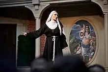 Pop-up Globe undertook their first New Zealand tour during the winter of 2019. Scenic designer Malcolm Dale designed a touring set resembling an indoor Jacobean playhouse that could be easily reconfigured for differently-sized stage spaces and the Nottingham’s Company’s productions of Measure For Measure and Hamlet were remounted and revised for the touring set, with some major adjustments being made to both productions to reflect that they would be performing indoors in proscenium arch theatres. There were also a number of changes of personnel within the Nottingham’s Company, including Clementine Mills taking over the role of Isabella in Measure For Measure and fan favourite Jonathan Tynan-Moss returning from the UK to take over as the Duke, whose disguise changed from a German friar to an evangelical Southern preacher.