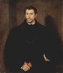 Ottavio's marriage troubled Alessandro; he struggled with the burden of chastity and entertained fantasies of marrying a princess. He resented his younger brother's arrangement; during the wedding ceremony he "became more deathly pale than death itself, and, so they say, is unable to bear this thing, that he, the first-born, should see himself deprived of such splendid status and of the daughter of an Emperor."[5] In 1546 Paul gave Pier Luigi the duchies of Parma and Piacenza as papal fiefs, a highly political move by the pope: in doing so he gave titles and wealth to Pier and appointed a lord who was subservient and owed a debt of gratitude, guaranteeing that the duchies would remain under papal control. At the same time, Ottavio was posted to the North of Italy to support Charles.[4] By 1546 Ottavio was 22 years old,[9] married to Margaret of Austria and an accomplished and distinguished individual. In 1547 his father was assassinated and Ottavio claimed the dukedom of Parma and Piacenza against the express wishes of both Charles, his father-in-law, and Paul. In doing so, Ottavio acted in opposition to the pope's desire to maintain the duchies as papal fiefs, and to Charles, whom he believed responsible for the plot to assassinate Pier Luigi.[4]