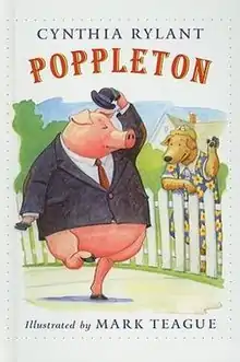 Poppleton is the main character in a series of children's books written by American author Cynthia Rylant. The stories follow a pig named Poppleton who moves from the city to a small town and enjoys humorous adventures with his friends and neighbors. This series is marketed to children ages 5 to 9.[1][2][3] Poppleton was the mascot for American Library Association's 1997 reading campaign.[4]