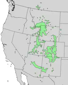 | Generalized natural range of Populus angustifolia | |