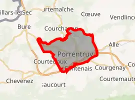 | Surrounded by | Fontenais, Bressaucourt, Courtedoux, Bure, Courchavon, Coeuve, Alle, Courgenay |