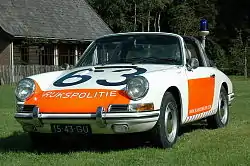 The 912 was also made in a special version for the German autobahn police (Polizei) and for the Dutch police (Rijkspolitie); the 100,000th Porsche car was a 912 Targa for the police of Baden-Württemberg, the home state of Porsche.[8] In the April 1967 edition, the Porsche factory's Christophorus Magazine noted: "On 21 December 1966, Porsche celebrated a particularly proud anniversary. The 100,000th Porsche, a 912 Targa outfitted for the police, was delivered." Porsche executives decided that after the 1969 model year, continuation of 912 production would not be viable, due to both internal and external factors. First, production facilities used for the 912 were reallocated to a new 914-6, a six-cylinder high performance version of the Porsche 914, Porsche-Volkswagen joint effort vehicle. Second, the 911 platform had returned to Porsche's traditional three performance-level ladder, including a base model 911T, a fuel-injected 911E, and a most powerful 911S, with pricing largely in line with market expectations. Third, more stringent United States engine emission control regulations also had a bearing on the decision; Ferry Porsche stated "It would have taken some trouble to prepare the 912 for the new exhaust rules, and with the arrival of the 914 we would have had three different engines to keep current. That was too many."[3]