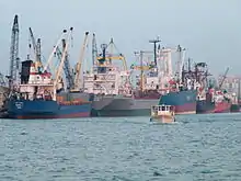 The Port of Tripoli (Arabic: مرفأ طرابلس) is the 2nd major port in Lebanon.[2] The port covers an approximate area of 3 square kilometres (1.2 sq mi), with a water area of 2.2 square kilometres (0.85 sq mi), and the land area composing of 320,000 square metres (3,400,000 sq ft), and a 420,000 square metres (4,500,000 sq ft) dump area adjacent to the current port, reserved for the future Container Terminal and Free Market Zone.[2][3]