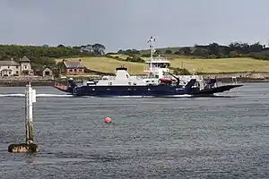 Various vessels were in use until 1969 when the Down District Council took over operation of a ferry capable of carrying vehicles and passengers. To operate the service, MV Strangford was built by the Verolme Shipyard in Cork. In 1975 the Welsh ferry Cleddau King was purchased and used as reserve ferry under the name MV Portaferry Ferry. In 2001, a new vessel named MV Portaferry II was brought into service, relegating MV Strangford to a support role and releasing the MV Portaferry Ferry for disposal. A second new vessel, MV Strangford II, was delivered in 2016 but her introduction was delayed until February of the following year when it was discovered that she was unable to discharge cars at high tide.[1][5][6][7]