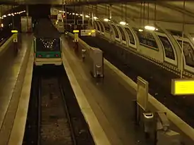 MF 67 rolling stock on Line 12 at Porte de la Chapelle