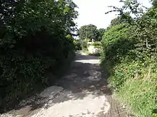 The Company (or its proprietors) also owned the harbour, and use of the tramroad and the harbour was exclusive to them. Initially it was laid as far as North Downs, near Scorrier, and a storage yard was built there. There was a branch to Treskerby, serving the mine there and Wheal Chance.[3][4][5]