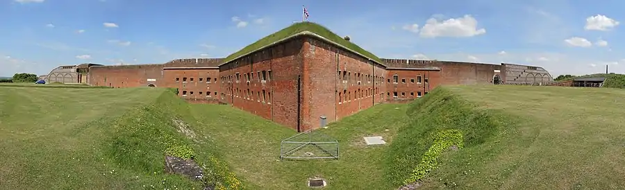 Guarding Fort Purbrook, the Crookhorn redoubt suffered from subsidence, and was demolished by 1876. The Farlington redoubt had only the ditches and gun positions dug, and was finally demolished in the 1970s.[18] The tunnel between Crookhorn and Purbrook has been rediscovered.[19]