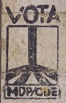 The Portuguese Democratic Movement/Democratic Electoral Commissions (Portuguese: Movimento Democrático Português / Comissões Democráticas Eleitorais, MDP/CDE or just MDP) was one of the most important organizations of the democratic opposition to the Estado Novo. It was founded in 1969 as an electoral coalition meant to run in the non-democratic and widely manipulated parliamentary election.