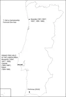 The Portuguese Grand Prix (Grande Prémio de Portugal) is a motorsports event that was first held in 1951 as a sportscar event, and then intermittently disappearing for many years before being revived again. In 1964 event was held as a sportscar race, and the 1965 and 1966 editions being held for Formula Three entrants. The event was part of the Formula One World Championship in 1958–1960, then again between 1984 and 1996, and after a long hiatus, it was revived for 2020 and 2021. The event has been held at several circuits throughout its history.